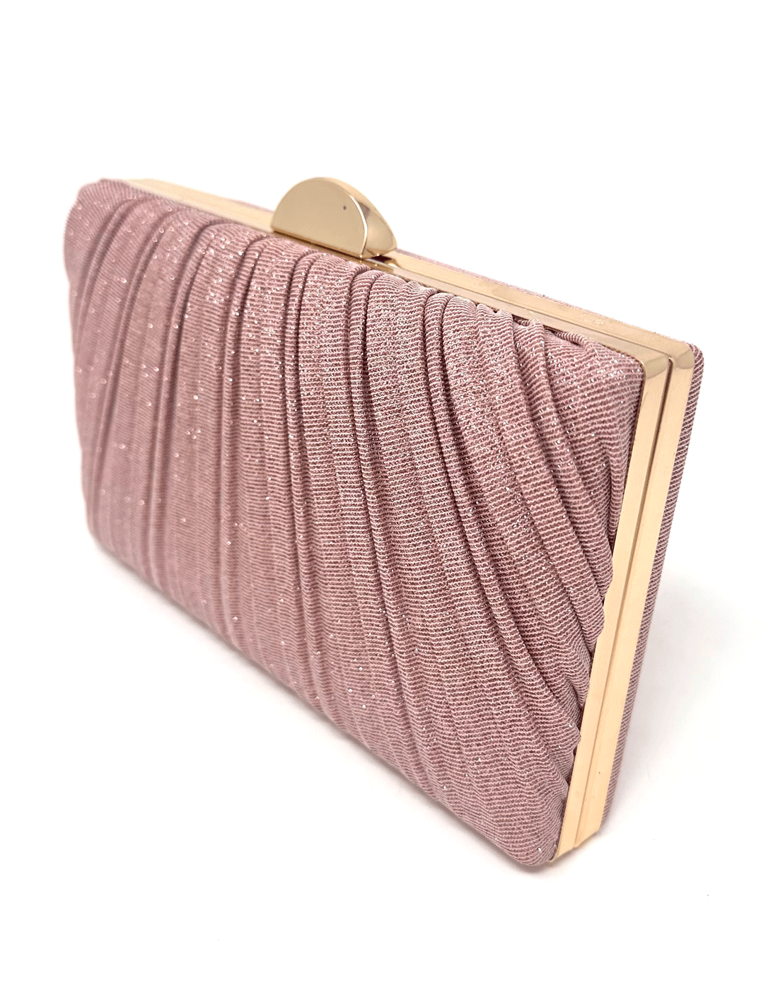 Sac plissé à paillettes avec poignée intérieure dorée.