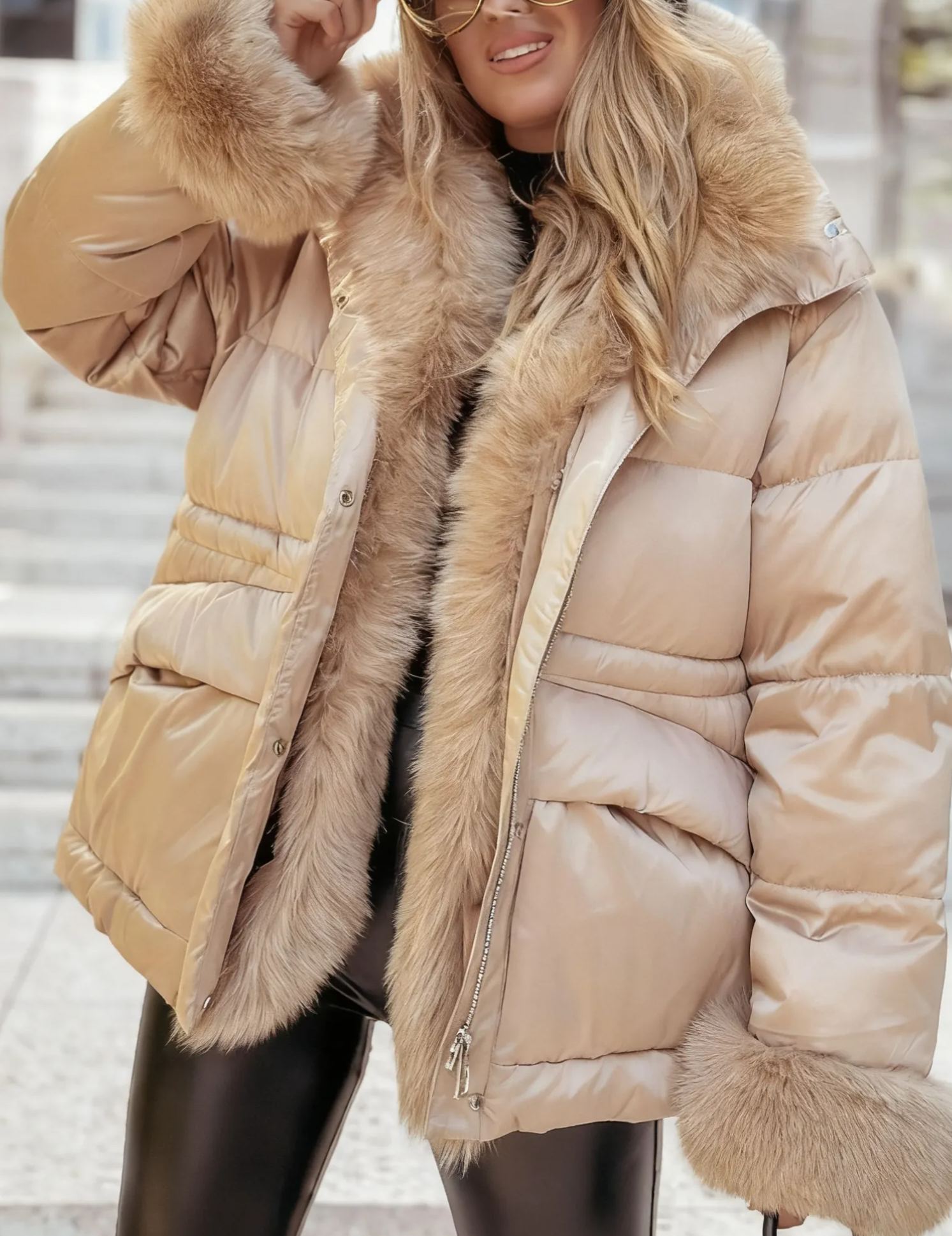 Restez confortable et chic avec cette doudoune doublée en fausse fourrure. La couche extérieure est fabriquée en nylon durable, et elle est remplie de duvet de haute qualité pour une excellente isolation. La doublure et les finitions en fausse fourrure douce ajoutent une touche luxueuse, en faisant un choix remarquable pour les temps froids. C'est parfait pour allier chaleur et style dans votre garde-robe d'hiver.